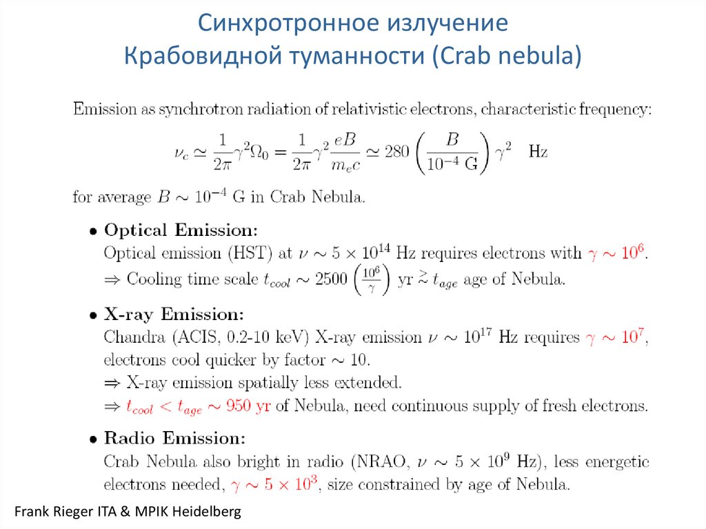 Синхротронное излучение Крабовидной туманности (Crab nebula) (лекция 5)