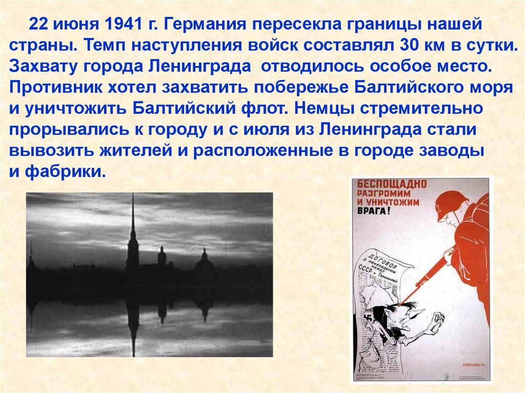 22 июня 1941 г. Германия пересекла границы нашейстраны. Темп наступления войск составлял 30 км в сутки.