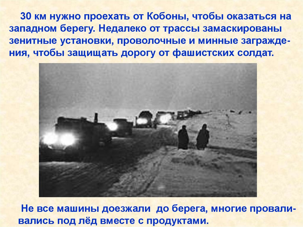 Самой страшной оказалась зима 1942 года. Тольковоенно- автомобильная дорога, проложенная по льду