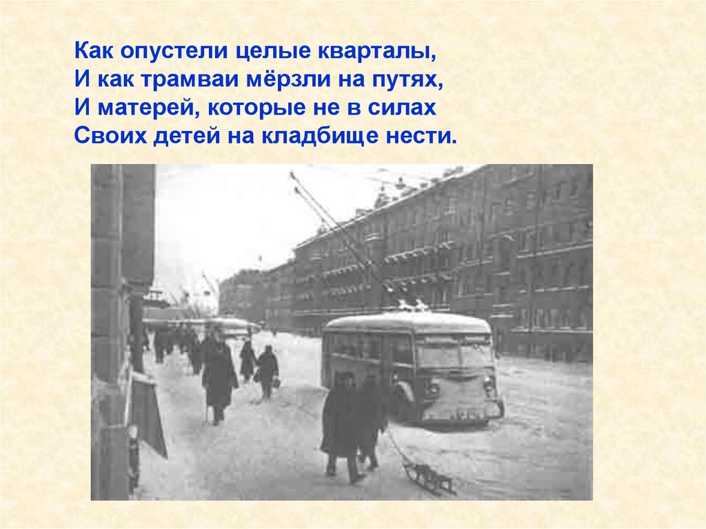 Как опустели целые кварталы,И как трамваи мёрзли на путях,