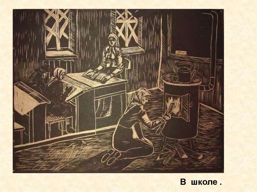 стояли печки «буржуйки». Все сидели в шубах, шапках и рукавицах. Писали на старых