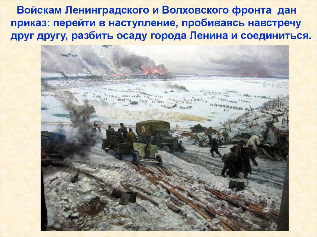 Войскам Ленинградского и Волховского фронта данприказ: перейти в наступление, пробиваясь навстречу
