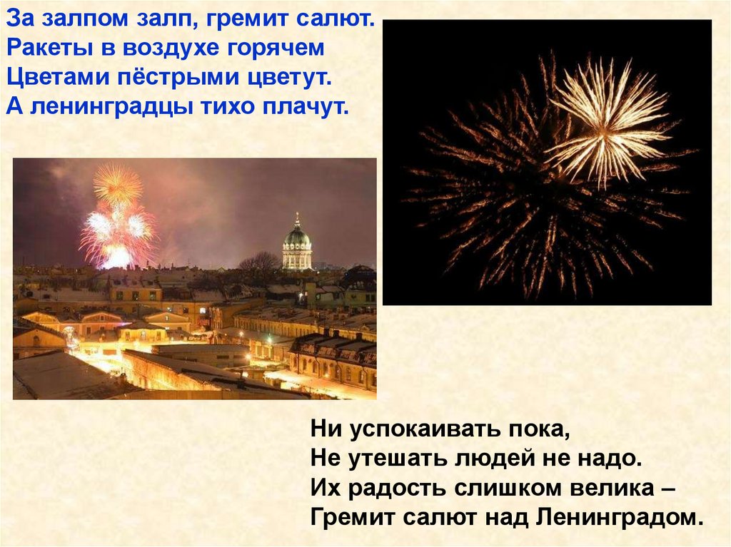 За залпом залп, гремит салют.Ракеты в воздухе горячем