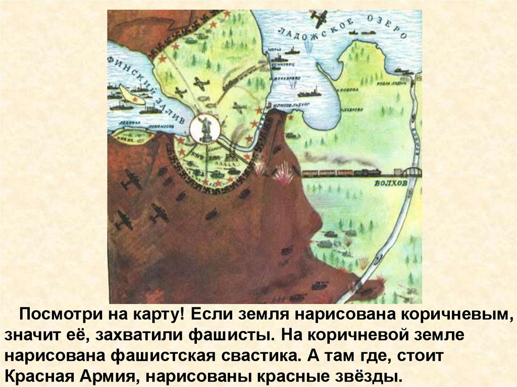 Посмотри на карту! Если земля нарисована коричневым,значит её, захватили фашисты. На коричневой земле