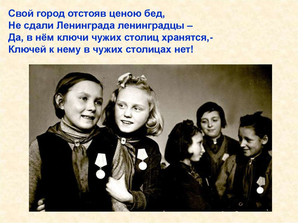 Свой город отстояв ценою бед,Не сдали Ленинграда ленинградцы –