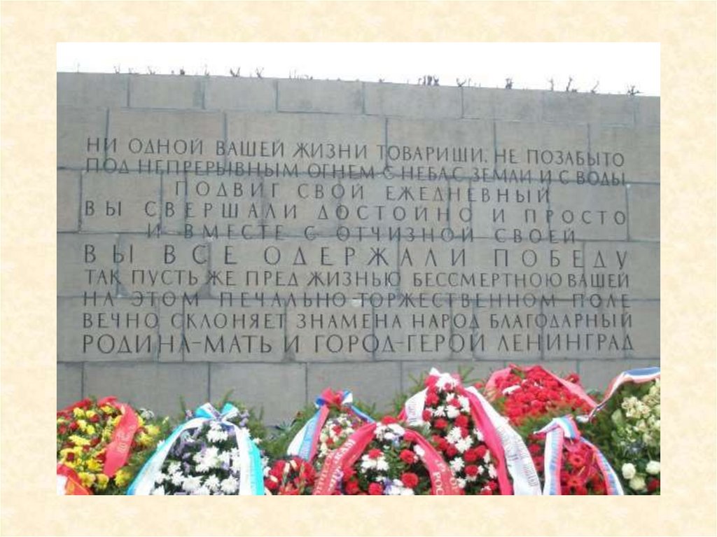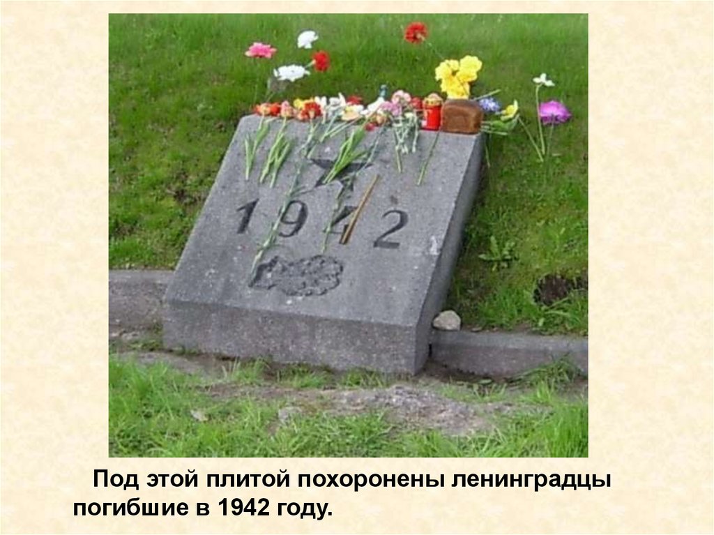 Под этой плитой похоронены ленинградцыпогибшие в 1942 году.