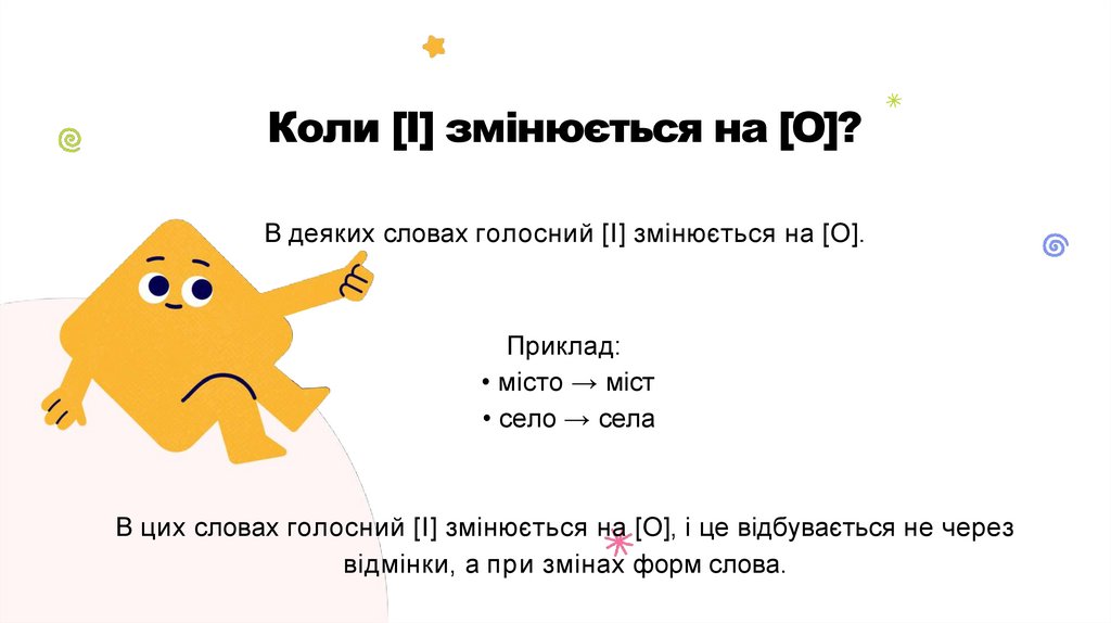 • місто → міст (зміна [I] на [O])