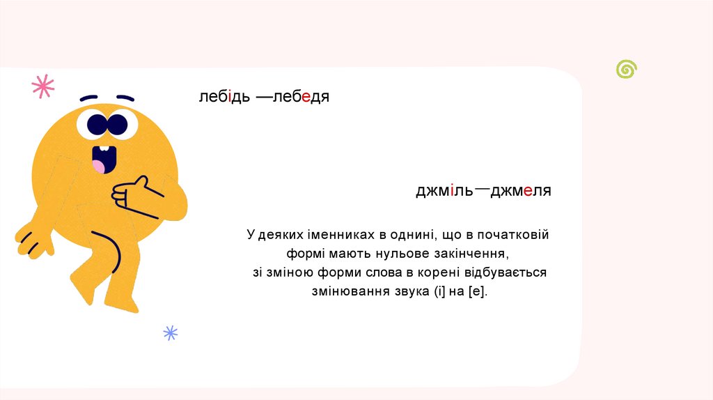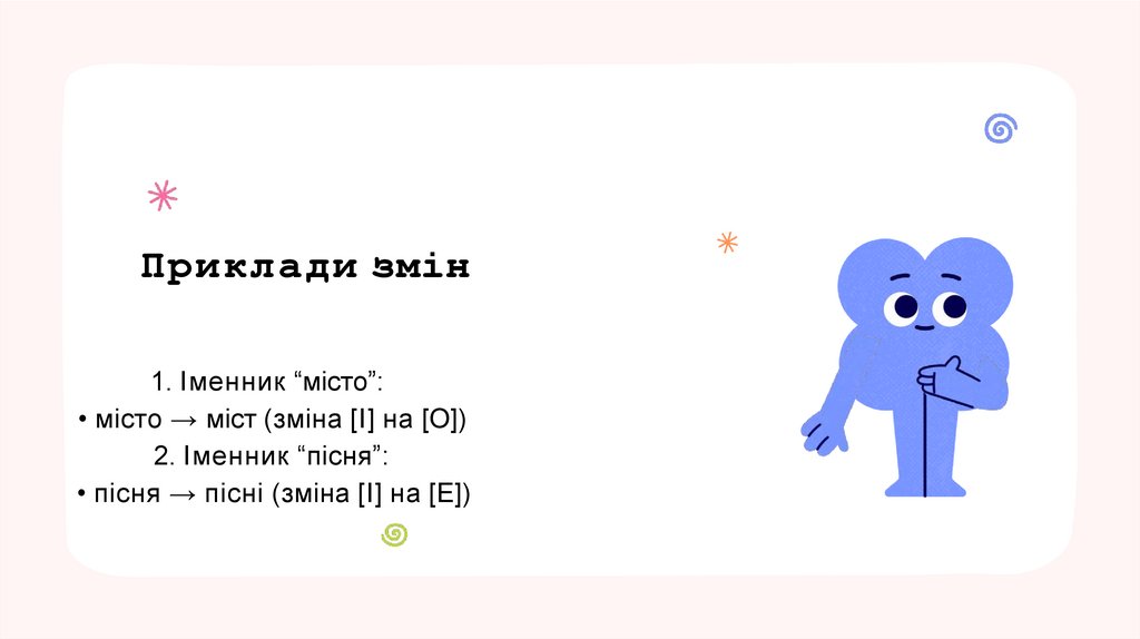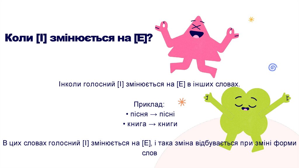 • пісня → пісні (зміна [I] на [E])