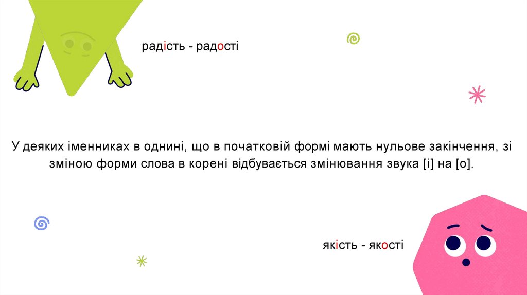 радість - радостіУ деяких іменниках в однині, що в початковій формі мають нульове закінчення, зі
