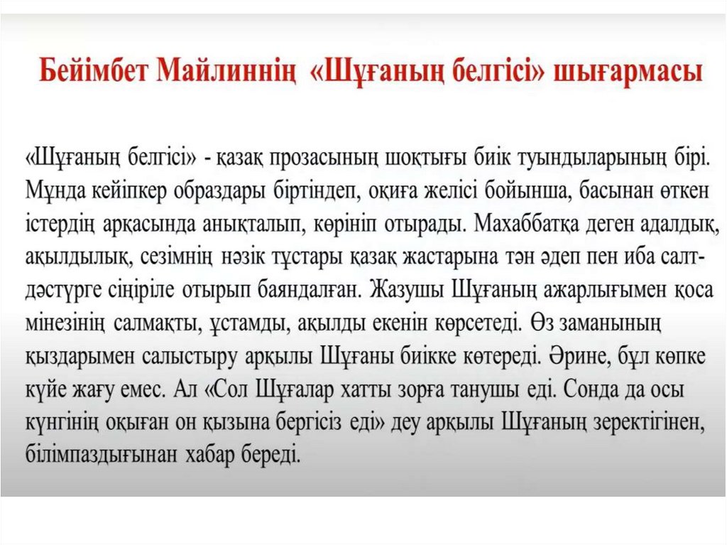 Бейімбет Майлиннің «Шұғаның белгісі» шығармасы