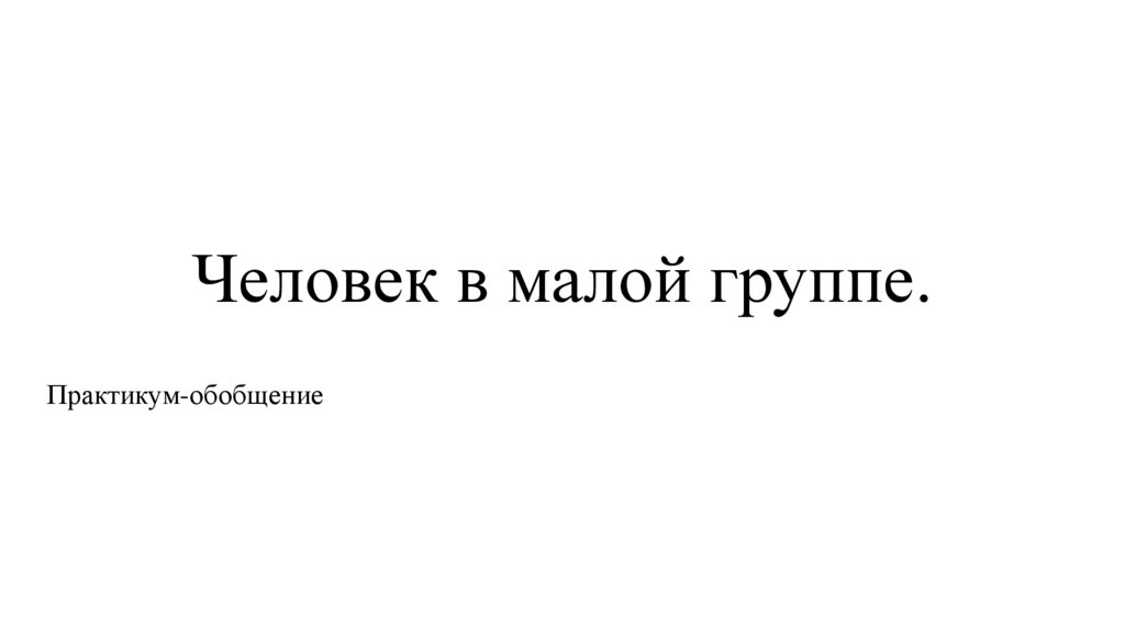 Человек в малой группе.Практикум-обобщение