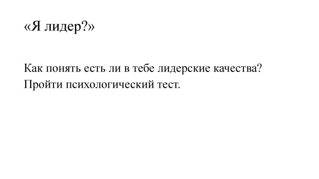 • «Я лидер?»