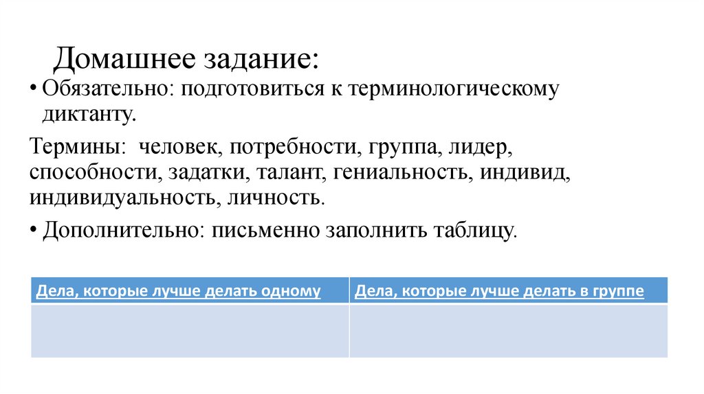 Термины: человек, потребности, группа, лидер,