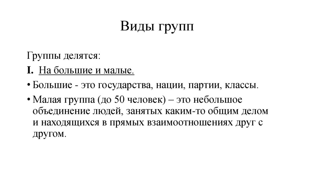 • Малая группа (до 50 человек) – это небольшое