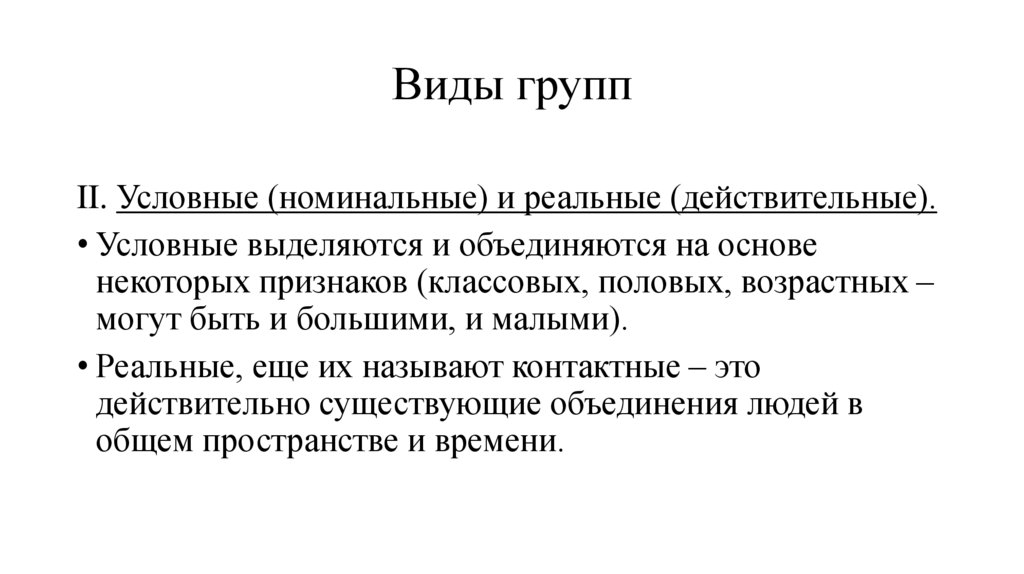 Виды группII. Условные (номинальные) и реальные (действительные).