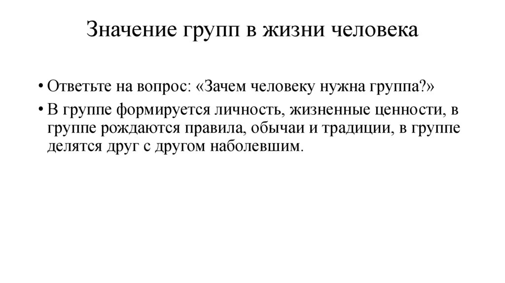 • Значение групп в жизни человека.