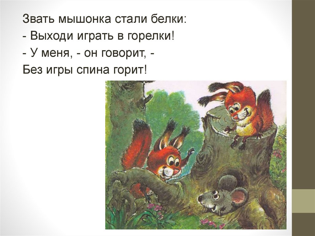 Звать мышонка стали белки:- Выходи играть в горелки!