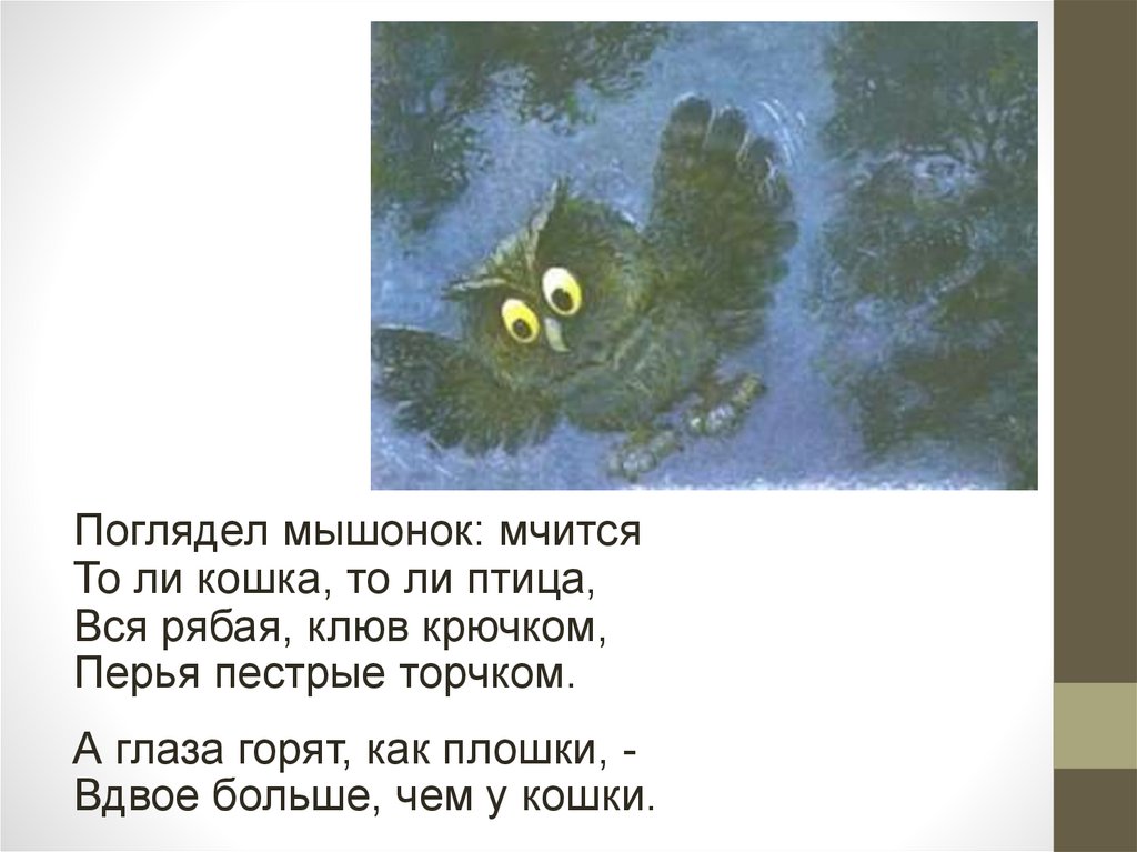 Поглядел мышонок: мчитсяТо ли кошка, то ли птица,