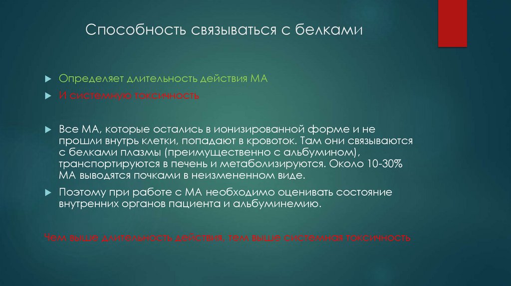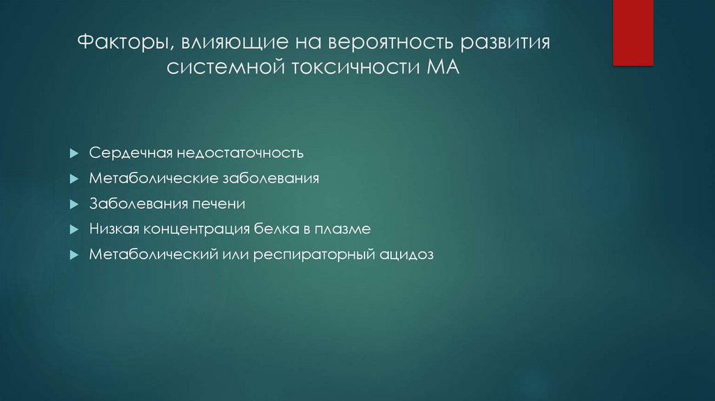 Факторы, влияющие на вероятность развитиясистемной токсичности МА