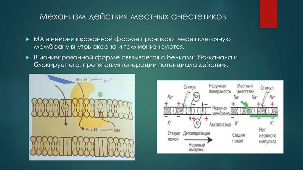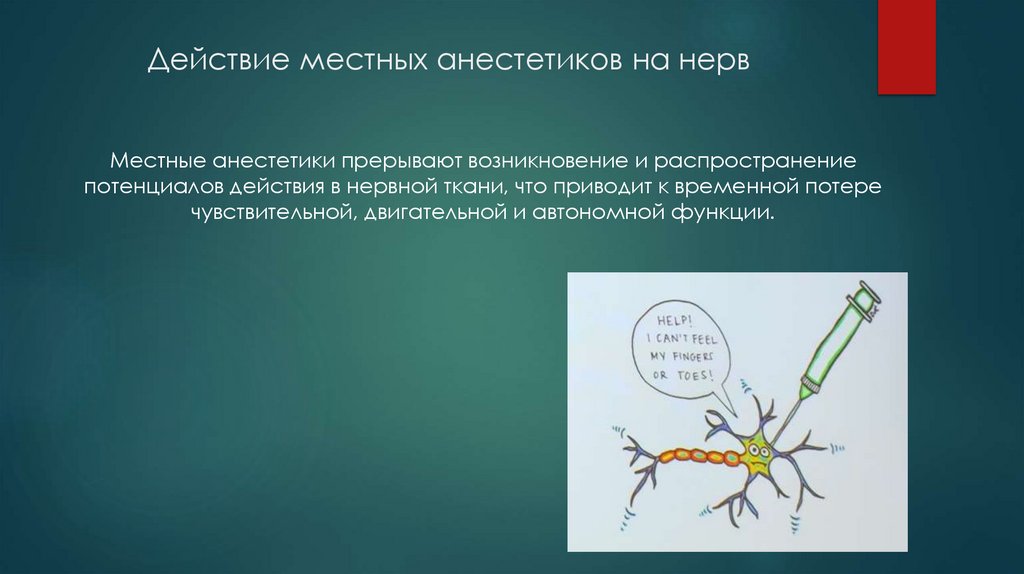 Действие местных анестетиков на нервМестные анестетики прерывают возникновение и распространение