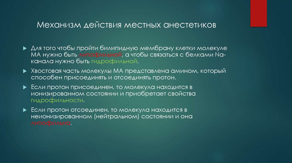 Механизм действия местных анестетиковДля того чтобы пройти билипидную мембрану клетки молекуле