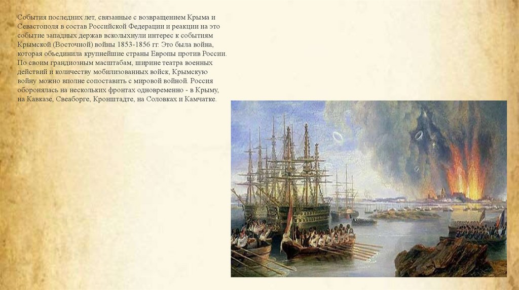 События последних лет, связанные с возвращением Крыма иСевастополя в состав Российской Федерации и реакции на это