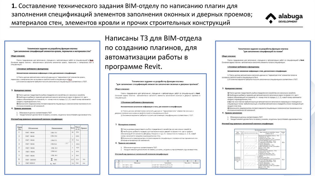 1. Составление технического задания BIM-отделу по написанию плагин длязаполнения спецификаций элементов заполнения оконных и дверных проемов;