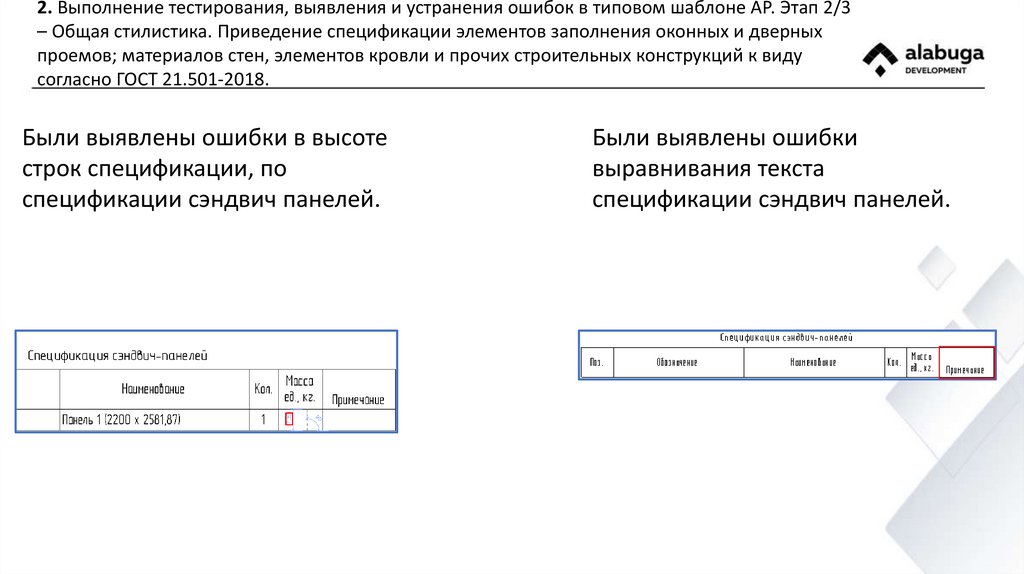 Спецификации по которым были выявлены ошибки, должны соответствовать
