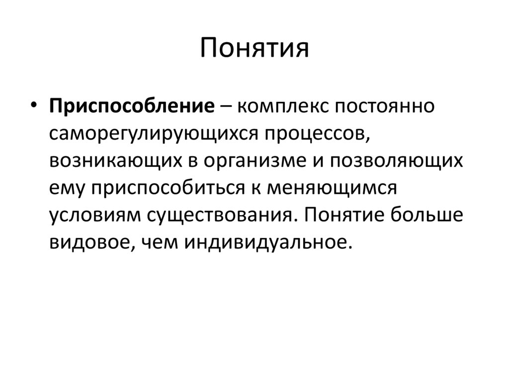 Понятия• Приспособление – комплекс постоянно