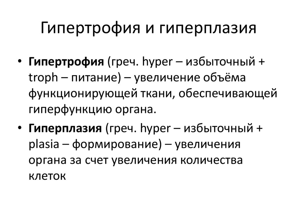 Гипертрофия и гиперплазия• Гипертрофия (греч. hyper – избыточный +