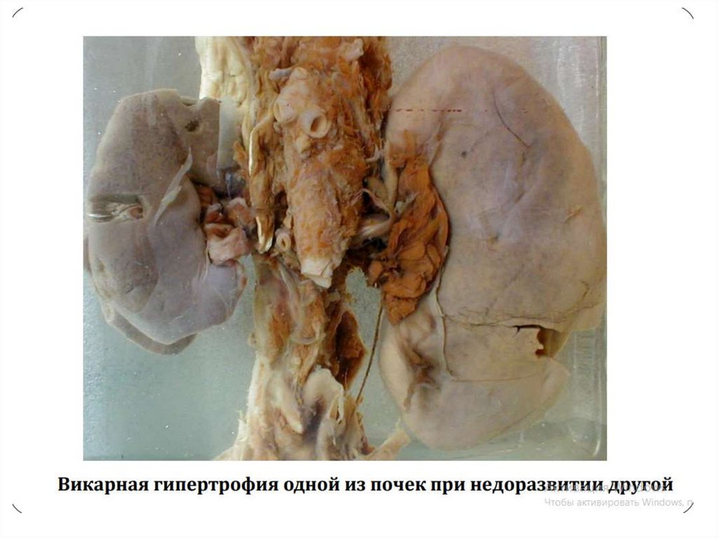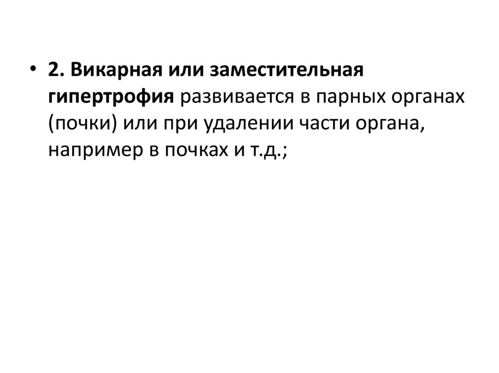 • 2. Викарная или заместительнаягипертрофия развивается в парных органах