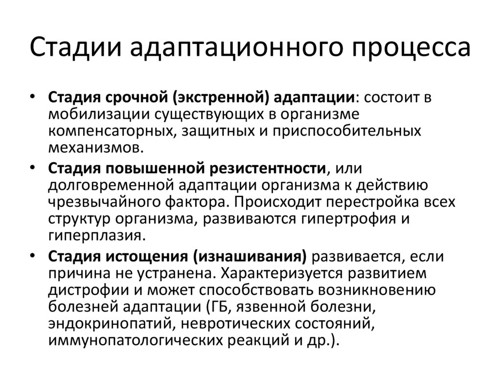Стадии адаптационного процесса• Стадия срочной (экстренной) адаптации: состоит в