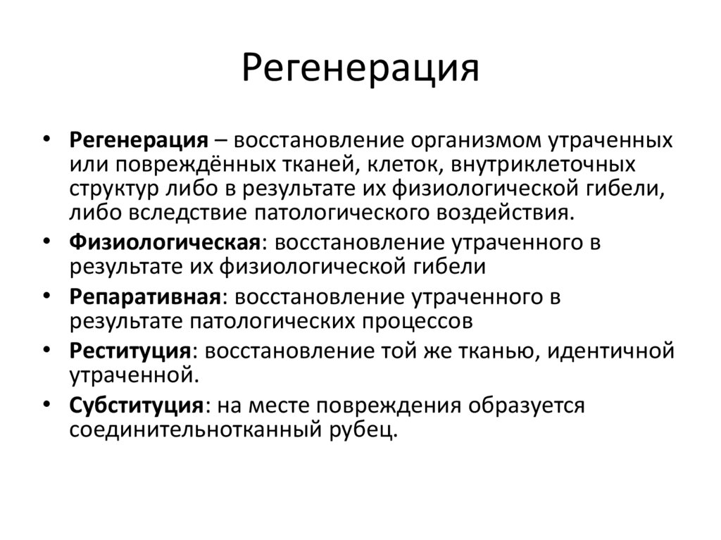 • Реституция: восстановление той же тканью, идентичной