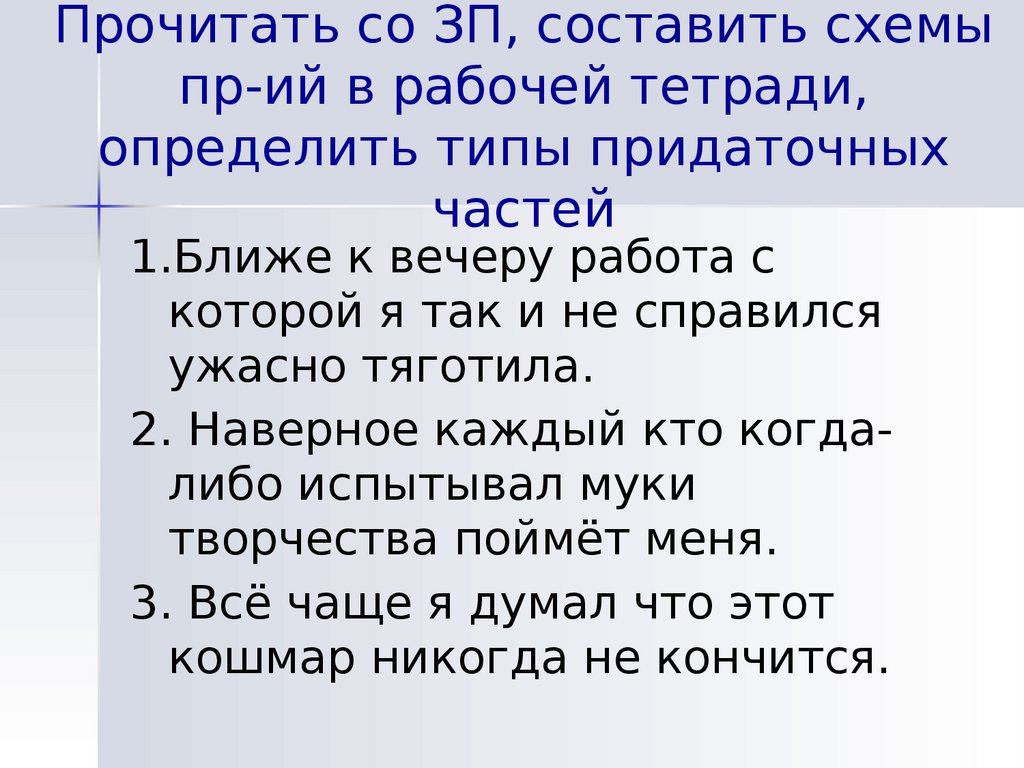 Прочитать со ЗП, составить схемыпр-ий в рабочей тетради,