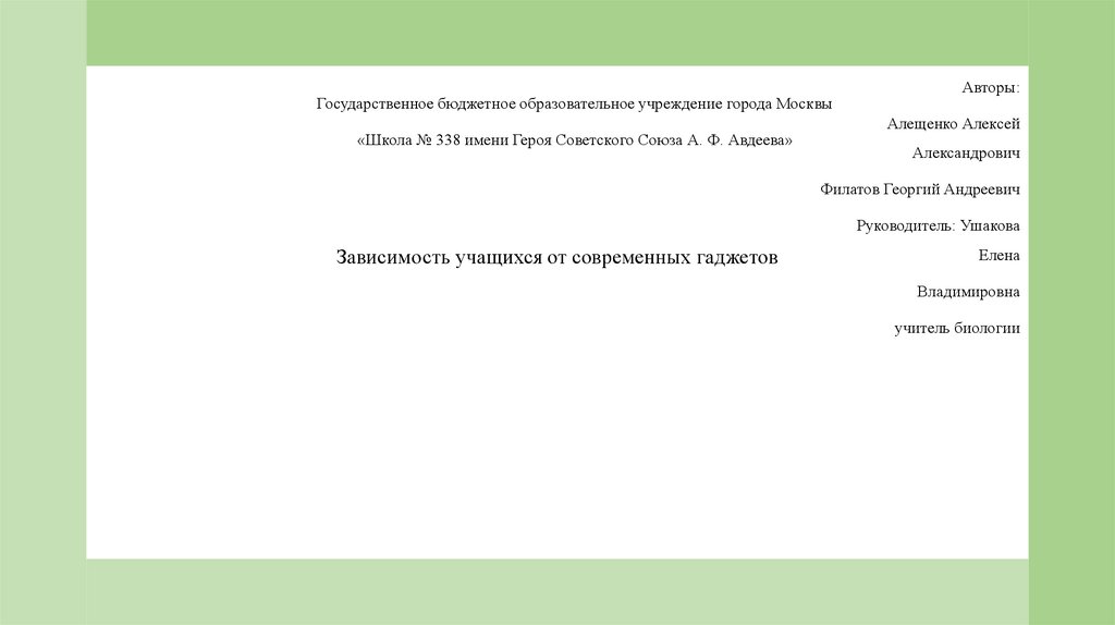 Государственное бюджетное образовательное учреждение города Москвы«Школа № 338 имени Героя Советского Союза А. Ф. Авдеева»