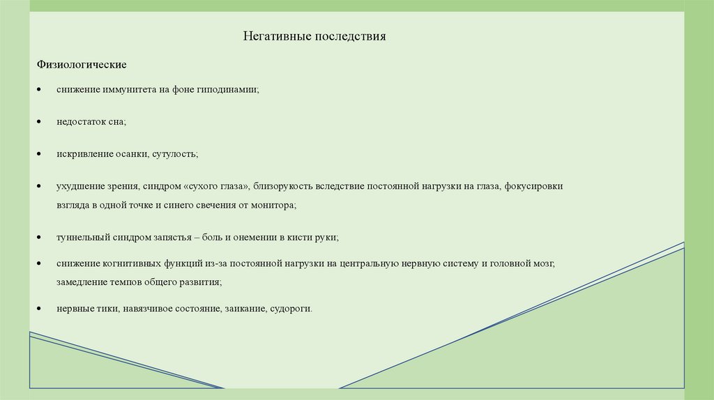 Негативные последствияФизиологические