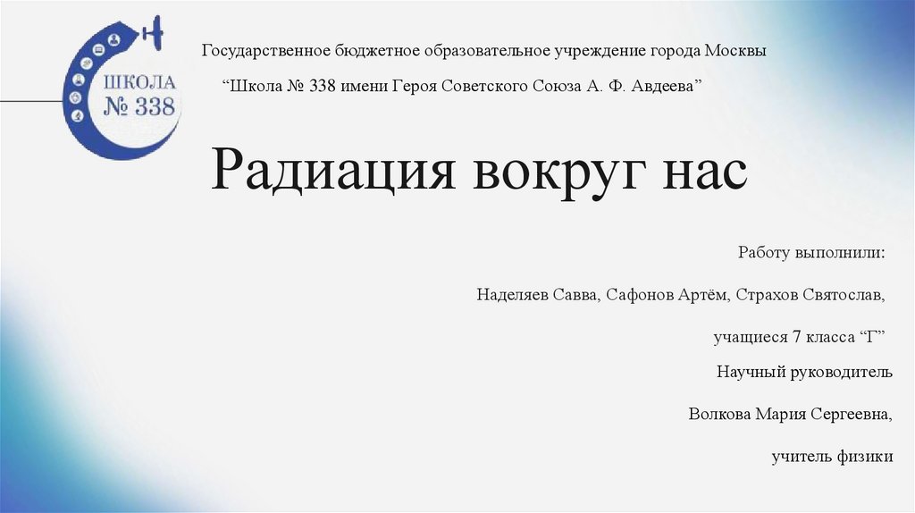 Государственное бюджетное образовательное учреждение города Москвы“Школа № 338 имени Героя Советского Союза А. Ф. Авдеева”