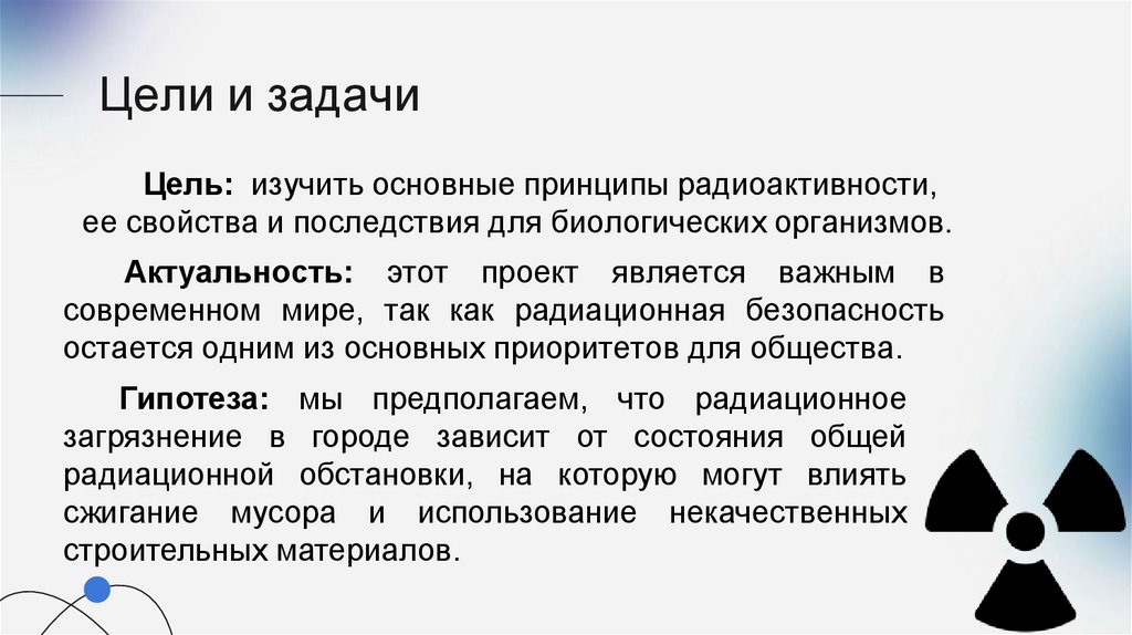 Цели и задачиЦель: изучить основные принципы радиоактивности,