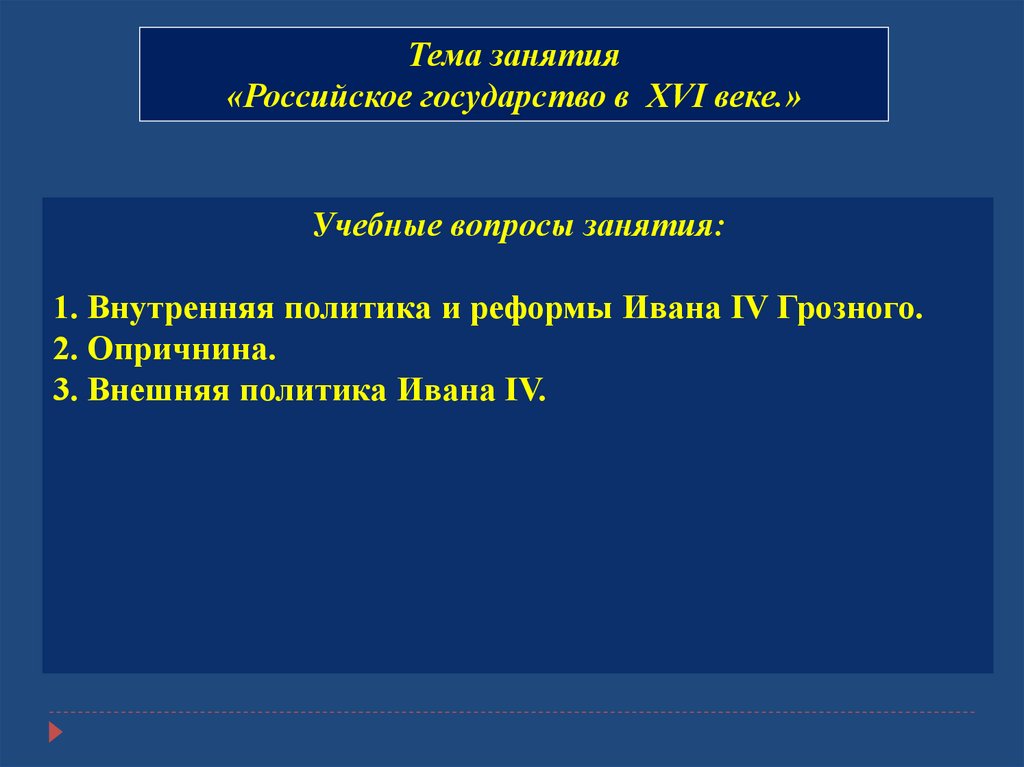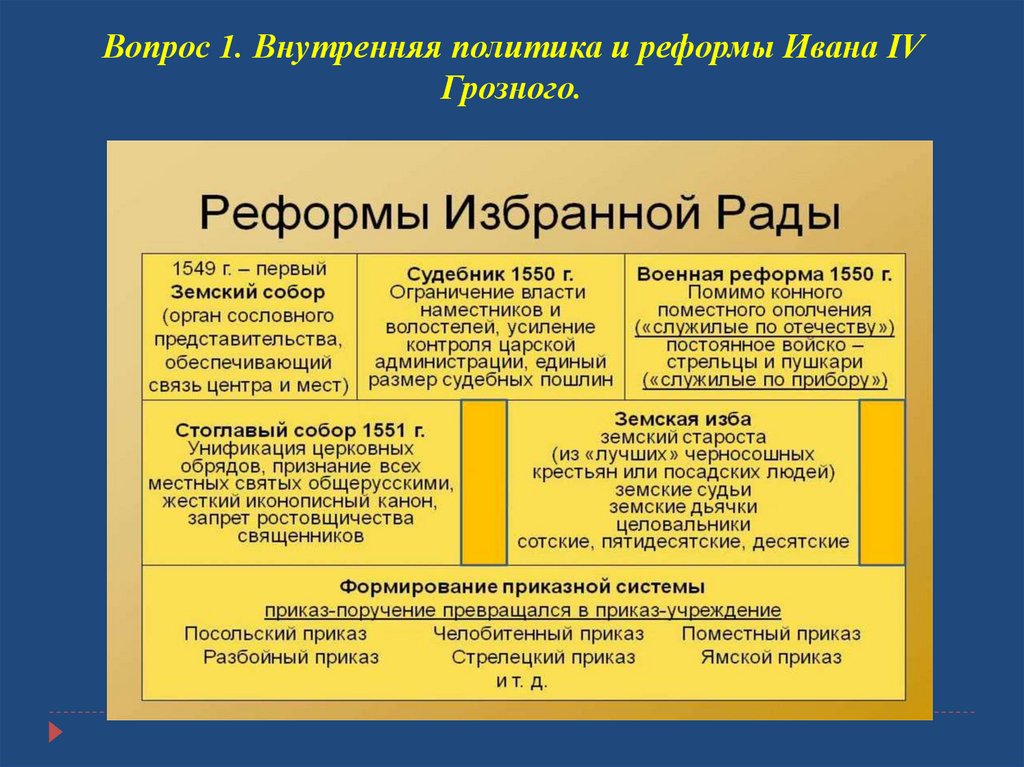 Вопрос 1. Внутренняя политика и реформы Ивана IVГрозного.