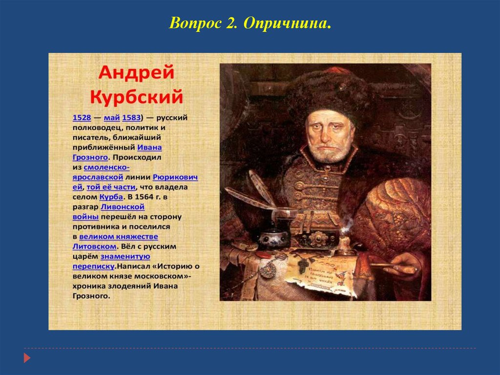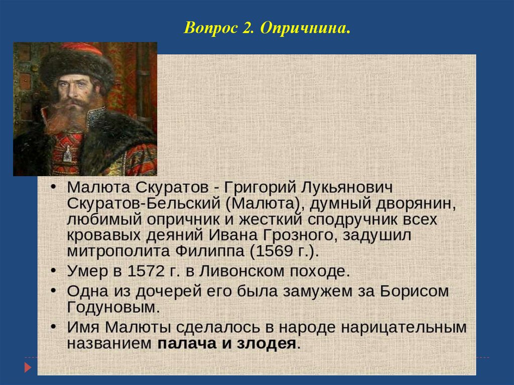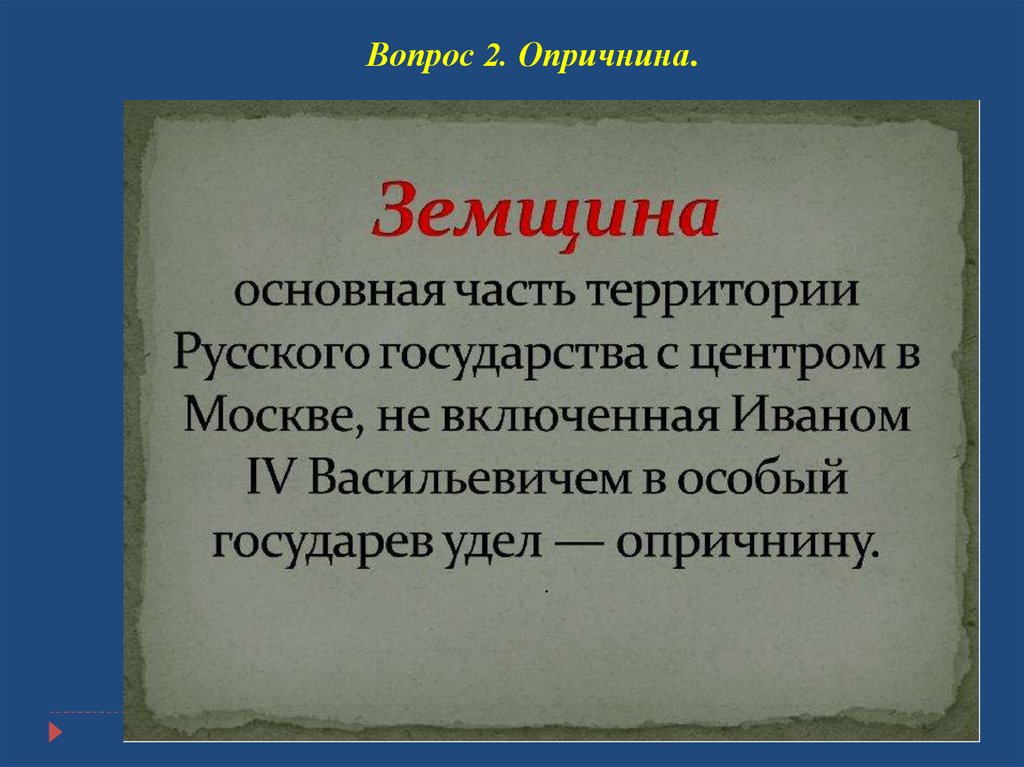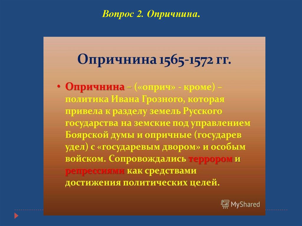 Вопрос 2. Опричнина.Слово «опричнина» происходит