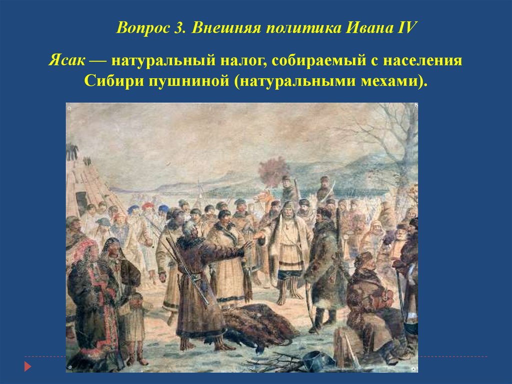 Вопрос 3. Внешняя политика Ивана IVЯсак — натуральный налог, собираемый с населения