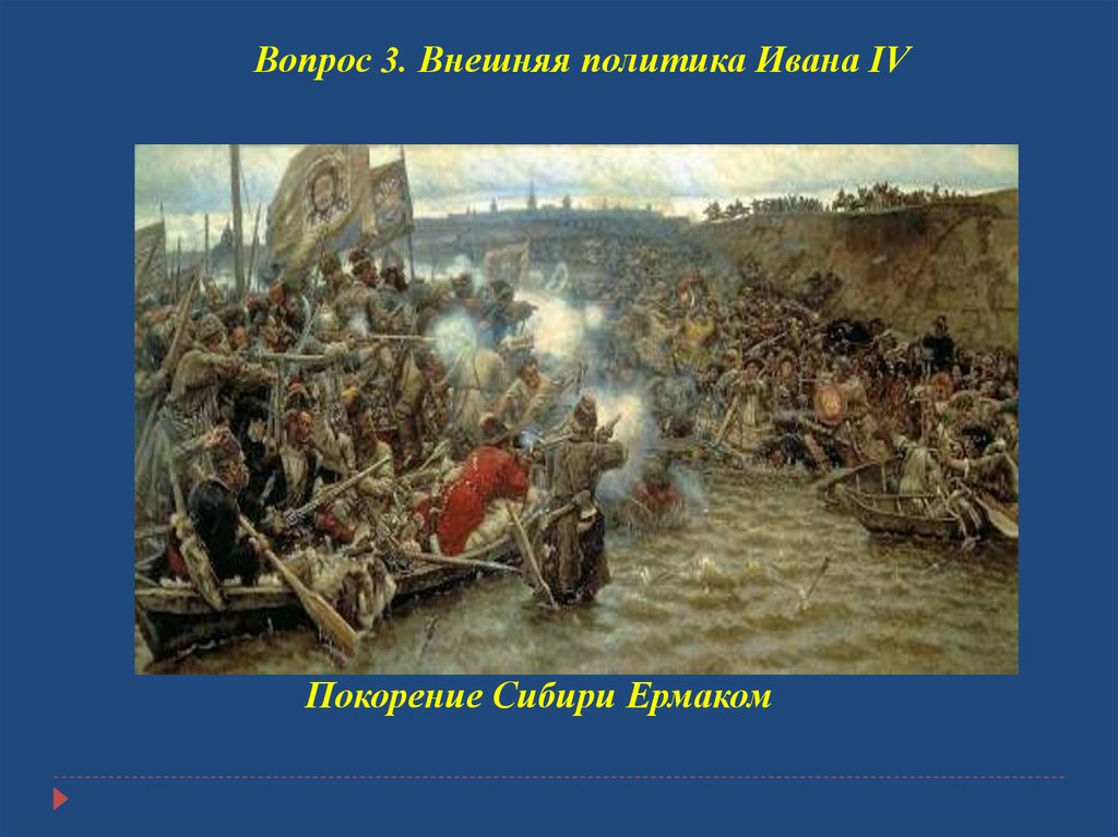 Вопрос 3. Внешняя политика Ивана IVПокорение Сибири Ермаком