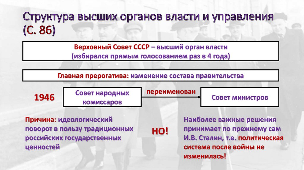 Верховный Совет СССР – высший орган власти(избирался прямым голосованием раз в 4 года)