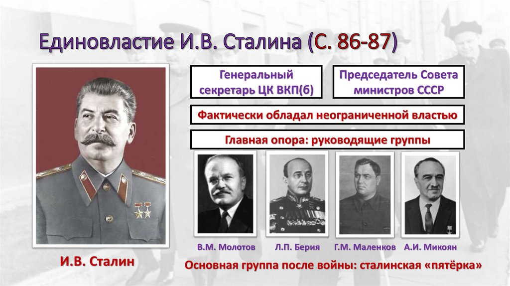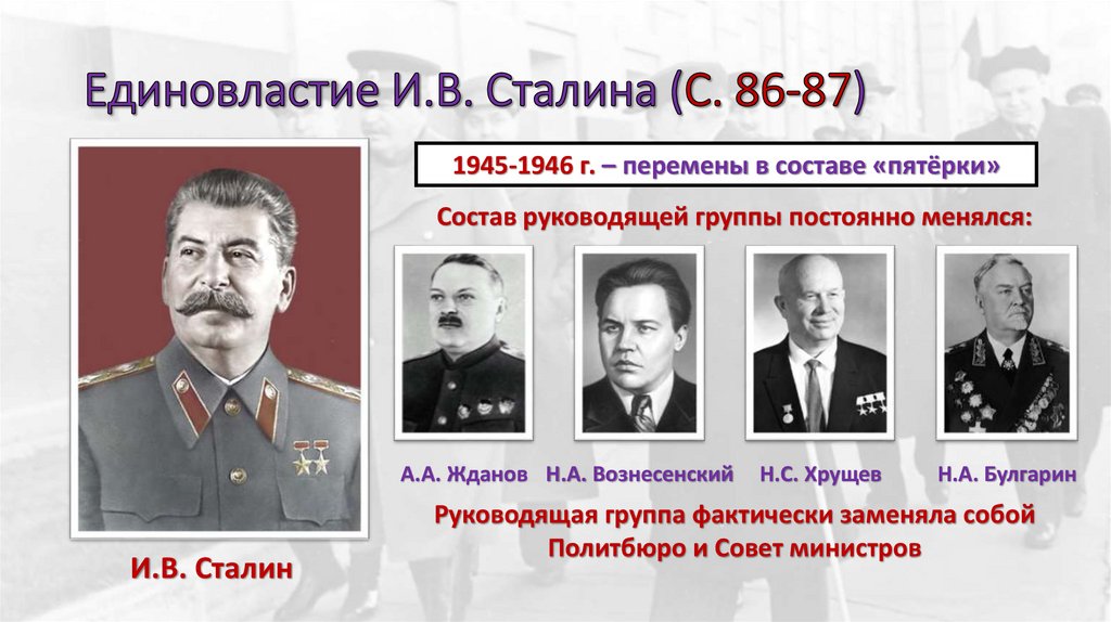 1945-1946 г. – перемены в составе «пятёрки»Состав руководящей группы постоянно менялся: