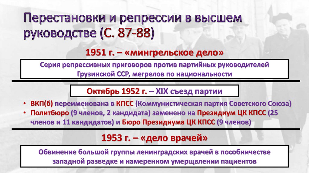 1951 г. – «мингрельское дело»Серия репрессивных приговоров против партийных руководителей