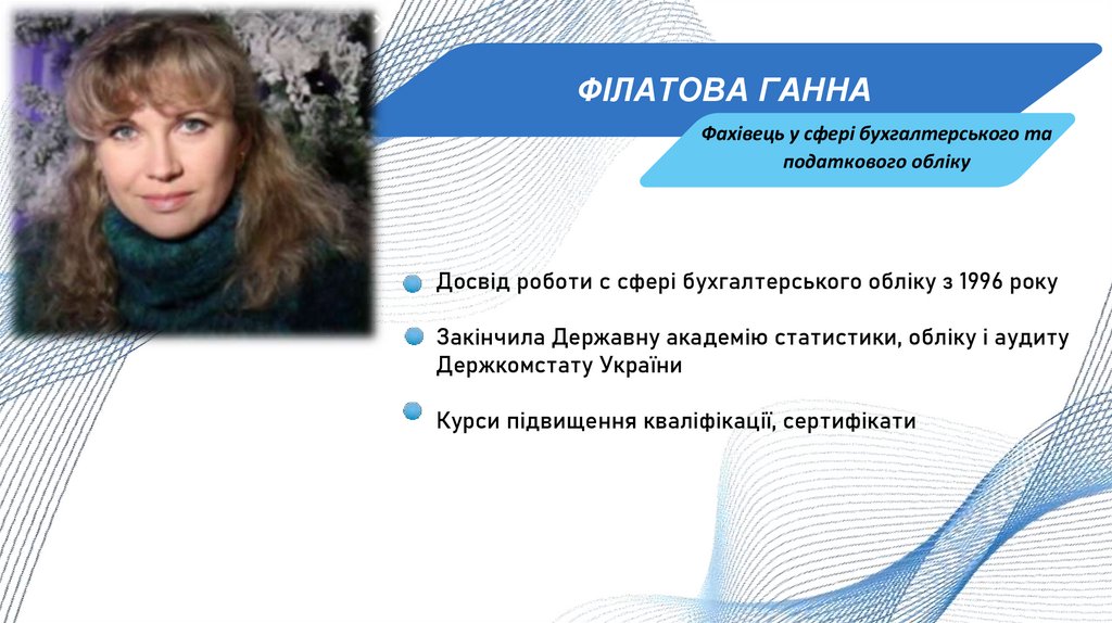 ФІЛАТОВА ГАННАФахівець у сфері бухгалтерського та