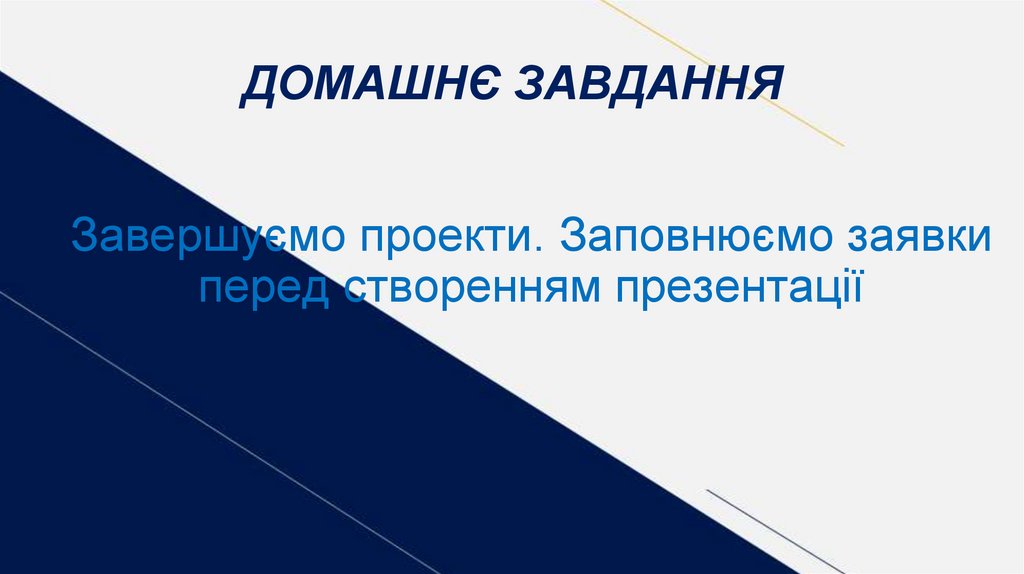 ДОМАШНЄ ЗАВДАННЯЗавершуємо проекти. Заповнюємо заявки