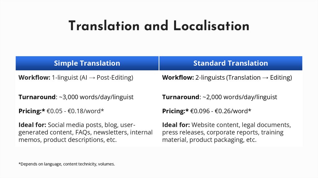 *Depends on language, content technicity, volumes.