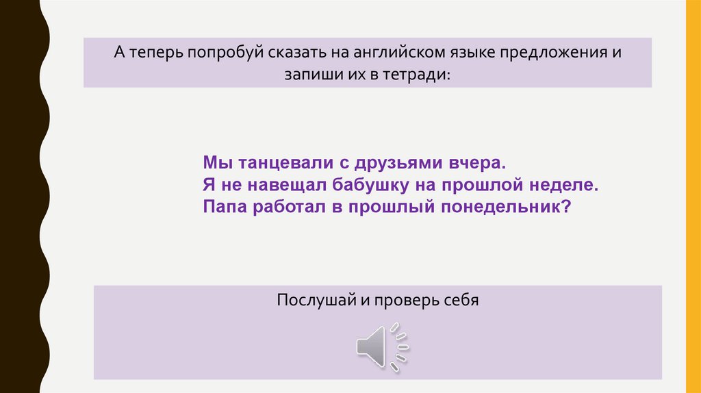 А теперь попробуй сказать на английском языке предложения изапиши их в тетради: