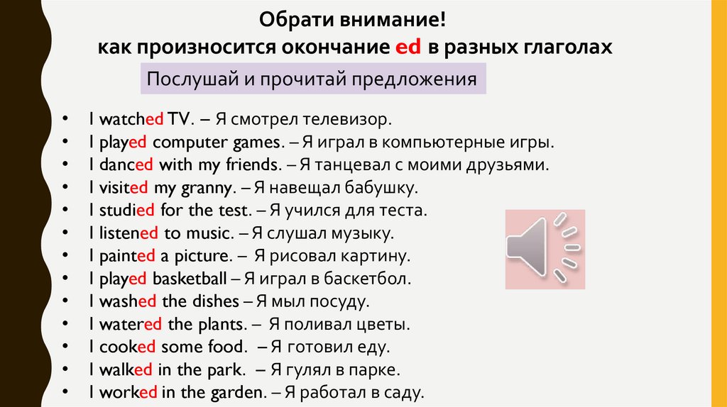 Обрати внимание!как произносится окончание ed в разных глаголах
